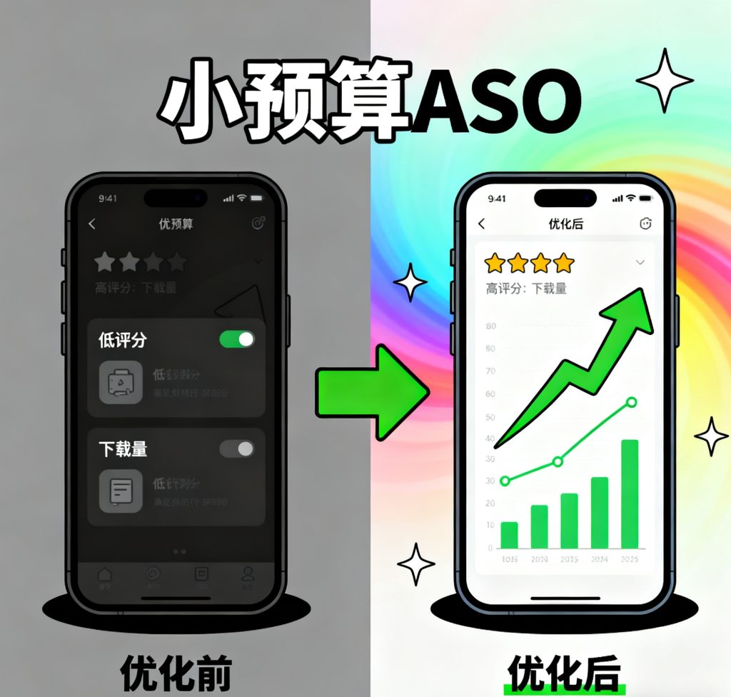先靠低竞争词拿首批流量,再根据数据优化细节,1-2个月可实现日均几百甚至几千下载,成本近乎为零。